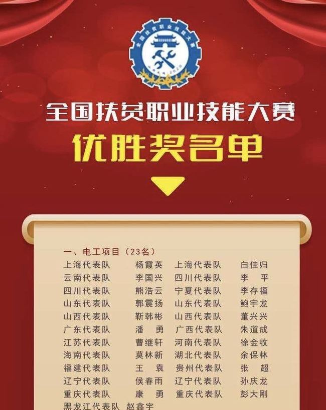8月13日,经过两天的激烈角逐,由人力资源社会保障部、国务院扶贫开发领导小组办公室共同主办的全国扶贫职业技能大赛圆满落幕。这是首次围绕扶贫主题专门面向建档立卡贫困家庭劳动者开展的职业技能赛事,共设立八个赛项。与世界技能大赛奖项设置相同,本次大赛为每个赛项前三名设金、银、铜三枚奖牌,排名前50%设优胜奖,其余为参与奖。来自yl6809永利官网的杨霞英和江南造船集团职业学校白佳归同学为上海代表队电工赛项获得两枚优胜奖。