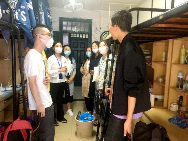我院学生工作相关老师轮班到生活园区门口迎接学生,同时安排多名学生志愿者在园区门口、宿舍门口帮助返校学生接送行李。虽然秋雨绵绵,但是返校氛围充满着浓浓暖意,老师们的热情迎接、志愿者们的爱心服务,全体辅导员在党总支副书记倪娜带领下到生活园区宿舍走访学生,关心学生健康和安全,耐心解答学生疑问,叮嘱学生遵守返校后日常管理相关要求,如:常态化测体温、通风和晚点名制度、口罩佩戴注意事项等。返校学生深刻感受到学校大家庭的温暖与关怀,对新学期的学习和生活充满了信心与动力。